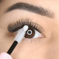 Under your natural lashes, apply a thin layer of bond, close to your roots. Avoid touching your water line, and do not apply it on your entire lash like a mascara. A small amount goes a long way.
